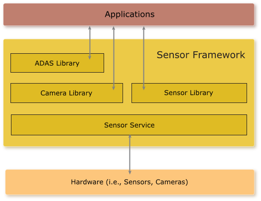 Camera and sensor drivers are provided with the Sensor Framework to support specific device types. For a list of the supported hardware, see the Getting Started with the Sensor Framework guide and the Getting Started guide for any hardware platform you plan to use. If a certain camera or sensor driver that you need isn't supported, you can contact BlackBerry QNX for help to write a custom driver. Or, you can integrate the device by using an API provided in the Camera or Sensor library.