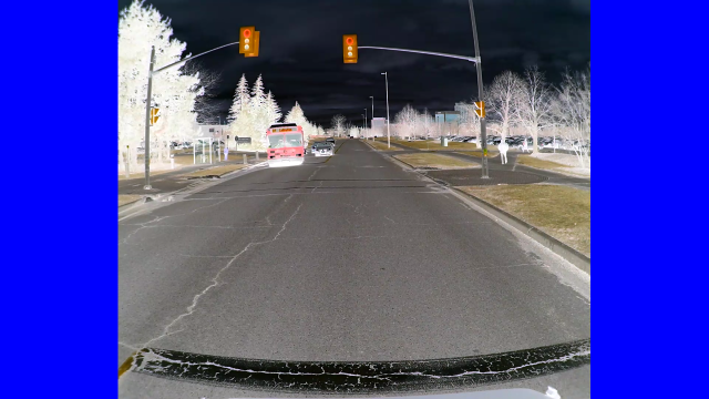 with the brightness inverted. For example, a red light remains red in the video as