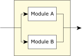 Figure 1. Aggregate module formed by two modules in parallel.If module A has an availability of Xa, and module B has an availability of Xb, the combined availability of a subsystem constructed of modules A and B connected in parallel is: